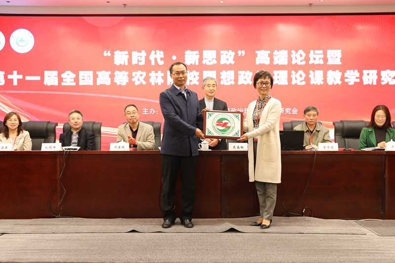 会议最后举行“授匾”仪式,由研究会会长武星亮教授将“会匾”授予公司王传发经理,这标志着2019年第十二届全国高等农林院校思想政治理论课教学研究会年会将在公司举办。会上,王传发教授还发表了热情洋溢的讲话,欢迎各位专家学者明年莅临彩云之南,相聚西林,共圆思政梦!