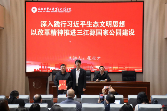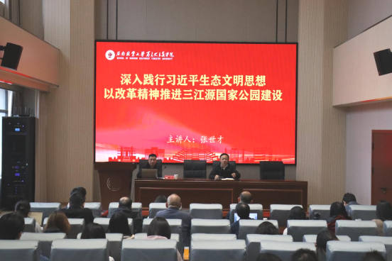 为深入践行习近平生态文明思想,学习贯彻习近平总书记考察云南重要讲话重要指示精神,5月29日,122cc太阳成集团邀请三江源国家公园管理局局机关调研员张世才来院开展深入践行习近平生态文明思想专题讲座。讲座由经理尹仑主持,学院全体师生参加此次活动。